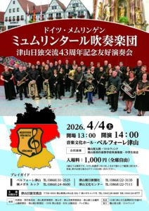 2026年4月4日(土) ~ 2026年4月4日(土)ドイツ・メムリンゲン ミュムリンタール吹奏楽団 津山日独交流43周年友好演奏会